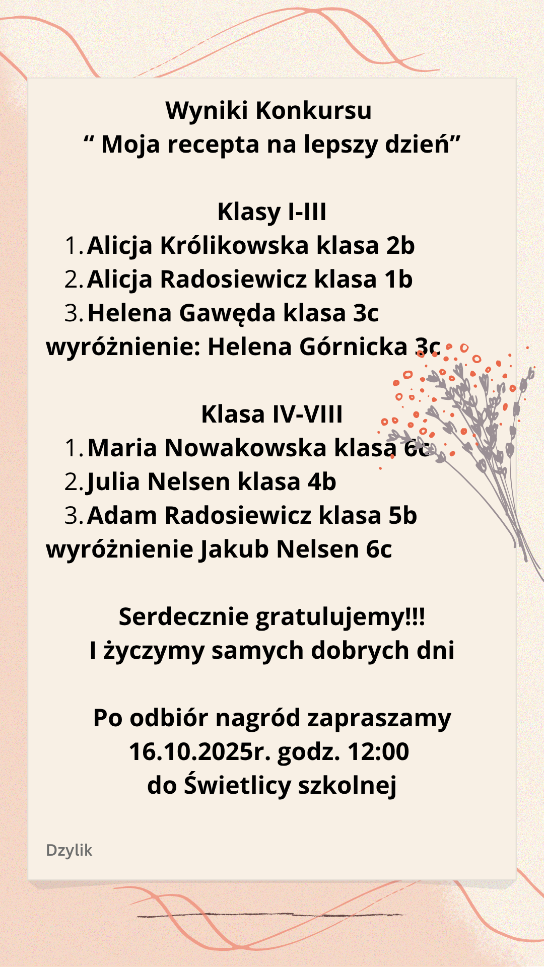 Wyniki konkursu '' Moja recepta na lepszy dzień''